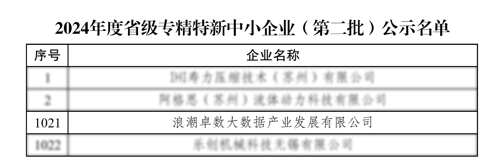近日,江苏省工业和信息化厅公布2024年度省级专精特新中小企业(第二批)名单,浪潮卓数大数据凭借深厚的技术实力与持续的创新能力成功入选。