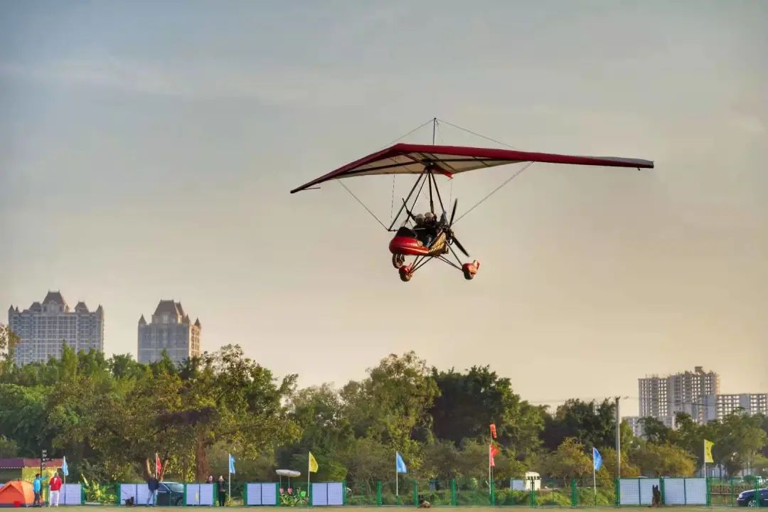△市民游客在砚洲岛航空运动旅游营地体验体验飞行。肇庆市融媒体中心记者 梁小明 摄
