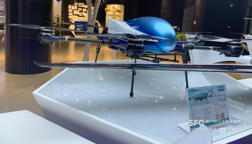 在华东无人机基地展厅,记者注意到,除了使用液态锂电池的无人机外,已经出现了使用氢燃料电池的无人机。产品介绍显示,由氢动力驱动的旋翼机飞行时间可达锂电飞机的4倍以上。